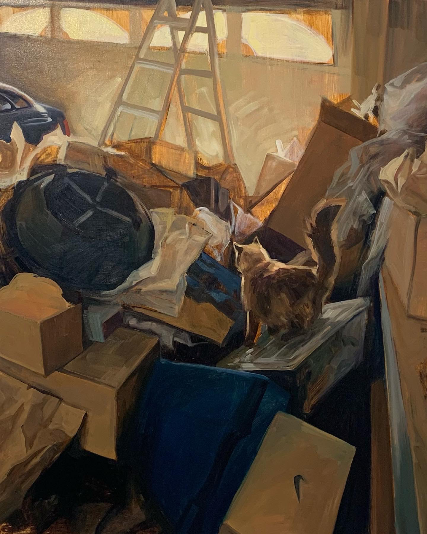 The suburban home, the car, the garage, and the clutter within, all speak to middle class life in America. In a country altered to cater to the needs of the car over the past century, the single-family home allocates the garage as a space dedicated to the car. It differs from the rest of the house in that it is uncurated and honest, typically hidden from guests and scarcely visited by residents. Exposed pipes, wooden beams, unpainted drywall are revealed in the garage, and, occasionally, engine components are laid bare as well. While the rest of the house is the most lived-in, the garage is the most blunt representation of American consumption and the fetish surrounding the car.